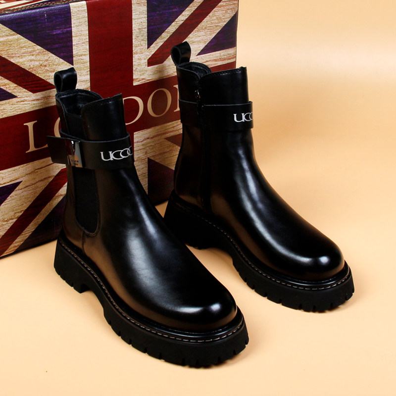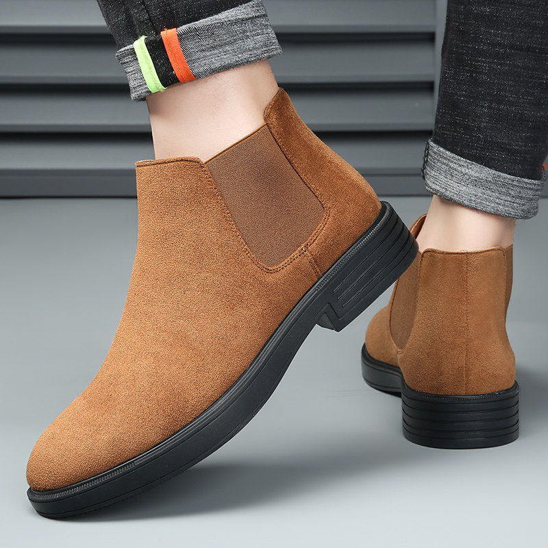 中帮切尔西靴男2025冬季复古加绒套筒马丁靴圆头皮靴青年户外靴子