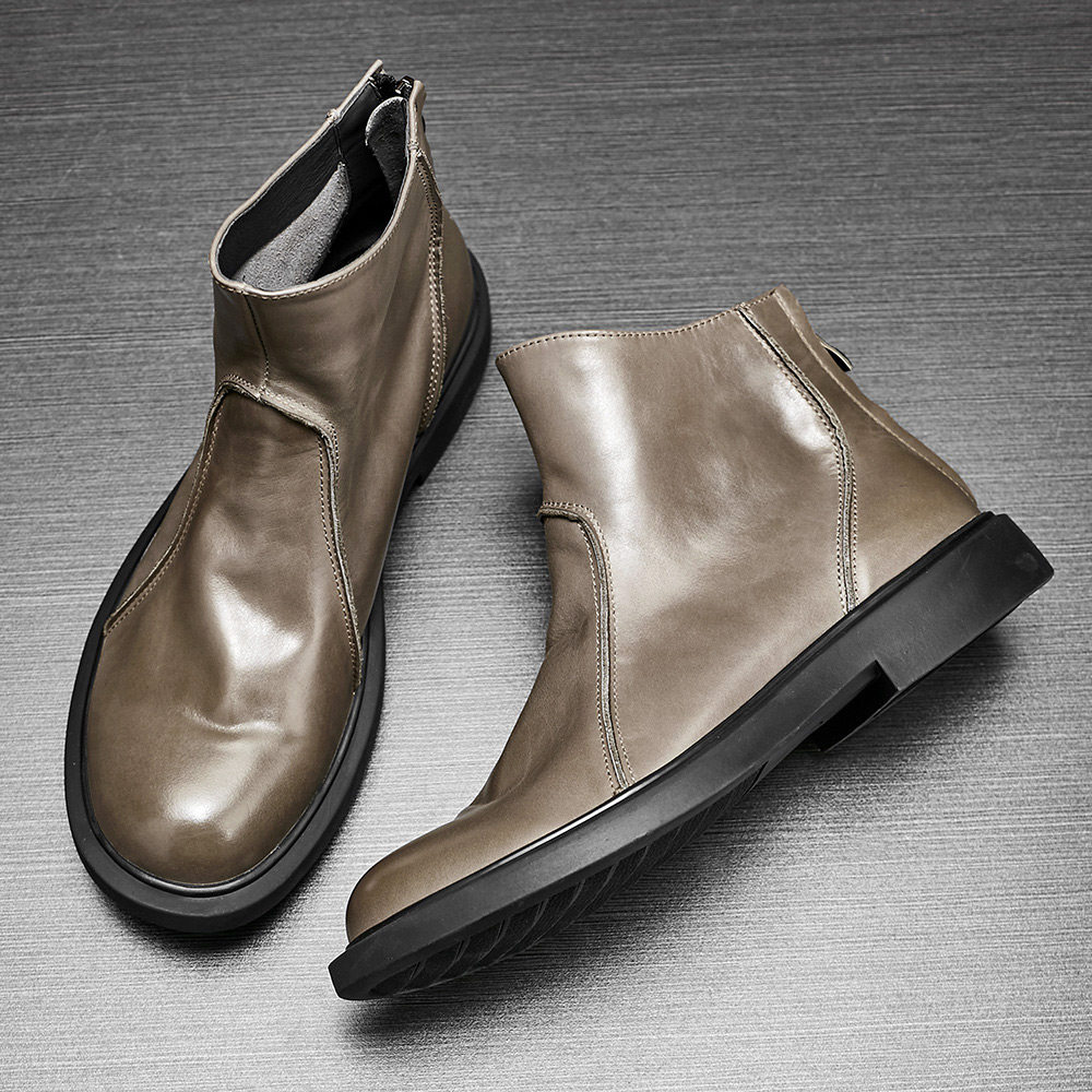 马丁靴真皮男秋冬拉链休闲百搭圆头高帮靴子潮流切尔西靴青年皮靴