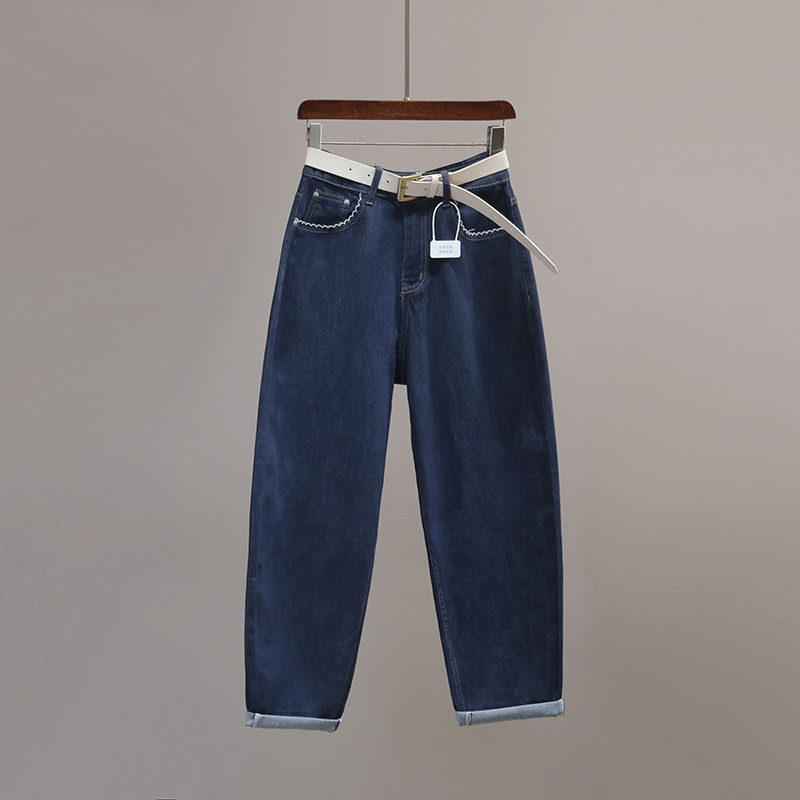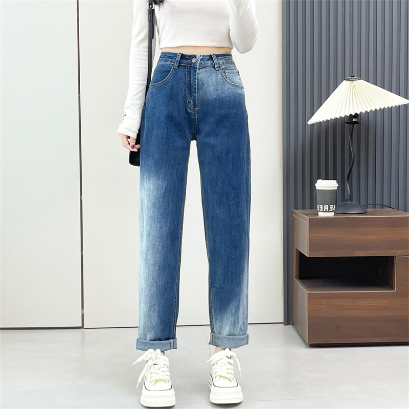 女小脚牛仔长裤显瘦哈伦裤高腰弹力垮裤2025年九分宽松大码萝卜裤