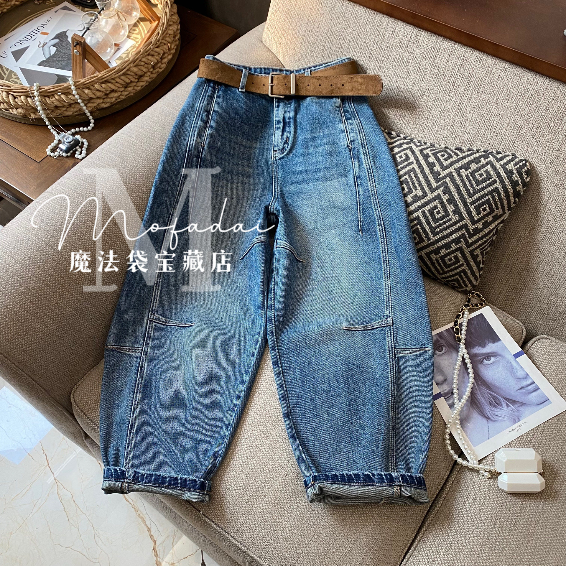 2025秋季新款复古休闲九分牛仔裤女胖妹妹大码宽松百搭哈伦裤垮裤