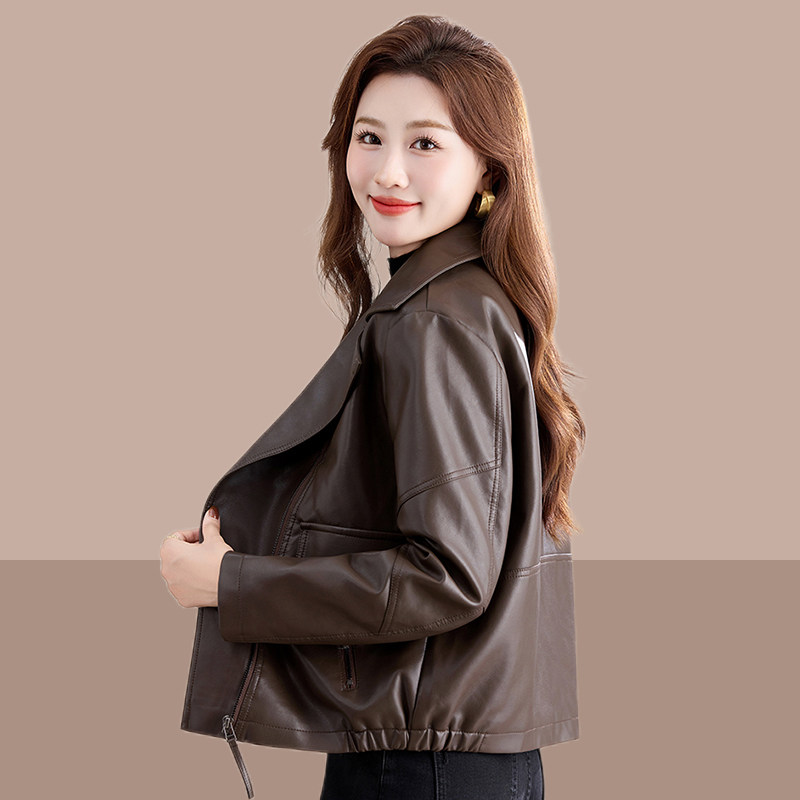 2025春秋时尚新款柔软细腻女士短款PU皮衣显瘦百搭气质减龄小外套