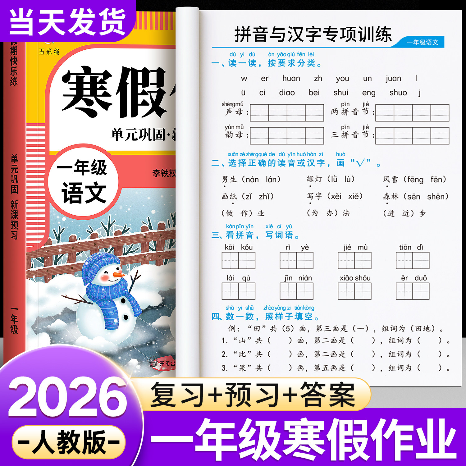 2026新版!一年级上册寒假作业语文数学全套人教版老师推荐小学生1上寒假衔接作业下册同步练习册训练快乐生活一本通小学上学期人教