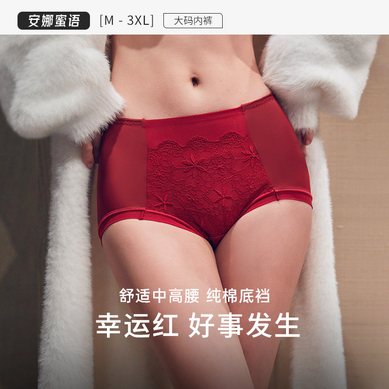 安娜蜜语红色本命年内裤女性感蕾丝高腰收腹10A抗菌大码三角裤薄