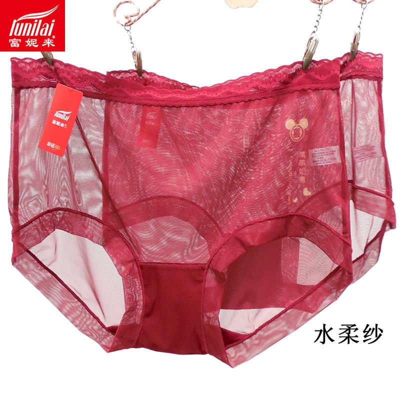 2条价 富妮来本命年内裤女性感全网纱红色结婚抗菌裆小平角裤5084