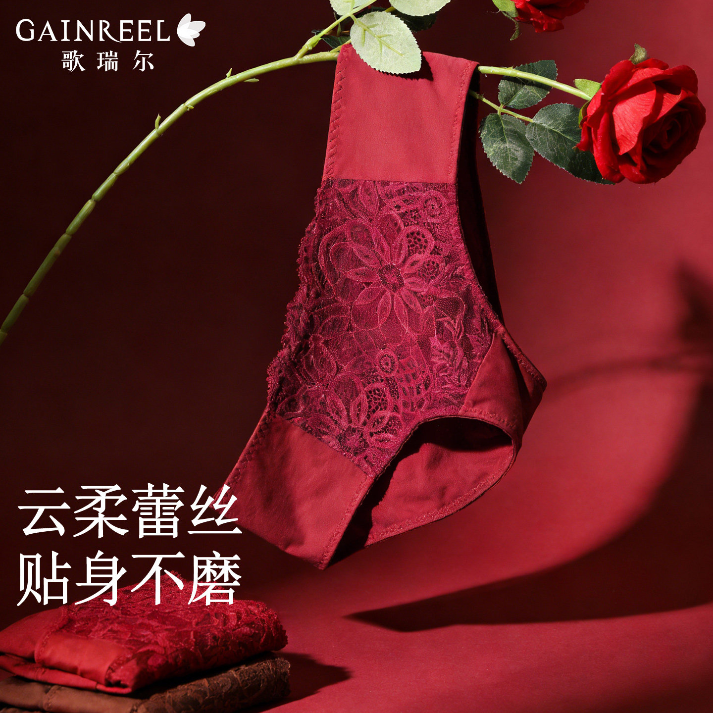 本命年内裤女性感蕾丝纯棉裆无痕中腰结婚内裤大红色女士内裤正品