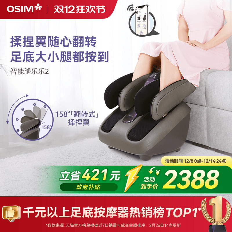 OSIM傲胜腿乐乐2足疗机足部按摩小腿部脚部踝推拿温热按摩器393S