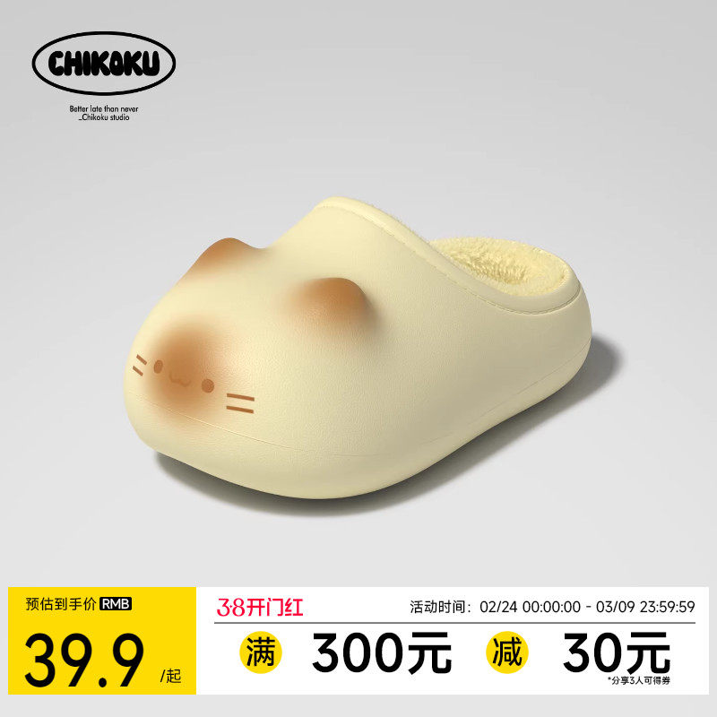 chikoku可爱猫爪印棉拖鞋女冬居家保暖情侣防水微足弓小猫棉拖男