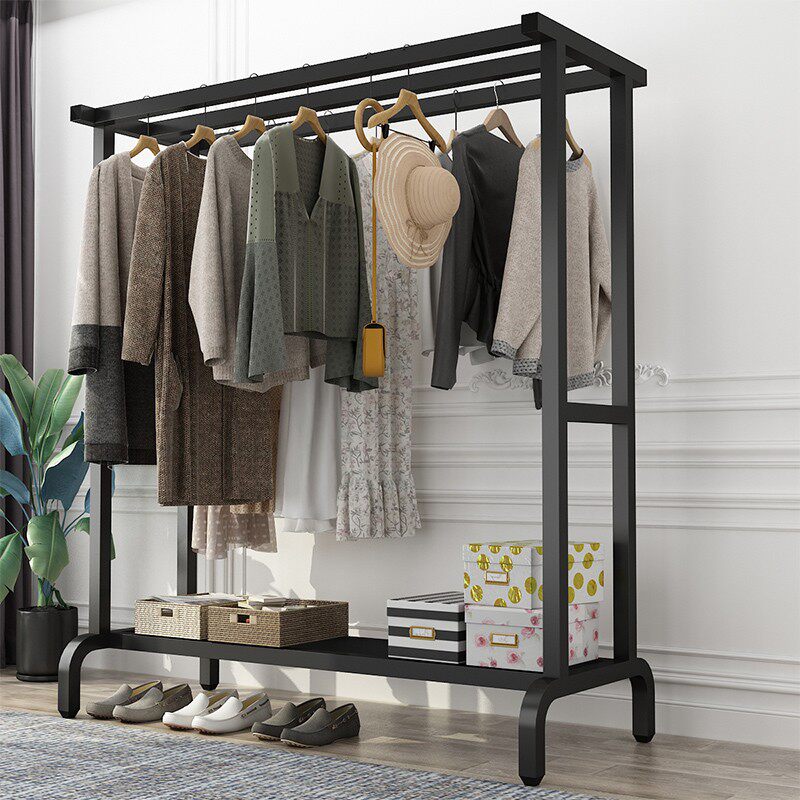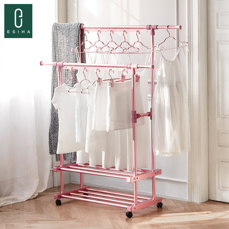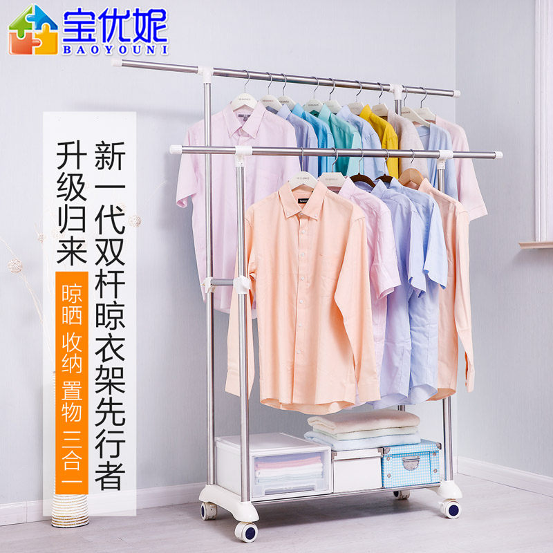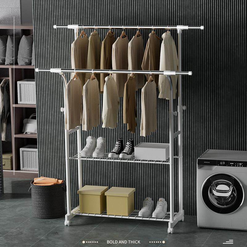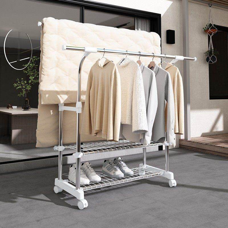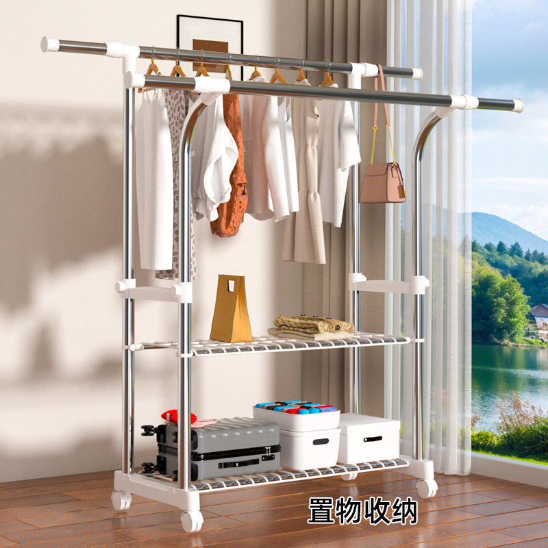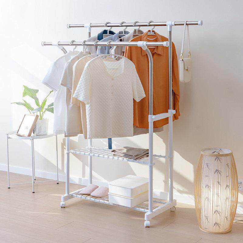 晾衣架落地双杆衣架卧室家用挂衣服架子衣服收纳层架简易移动衣帽