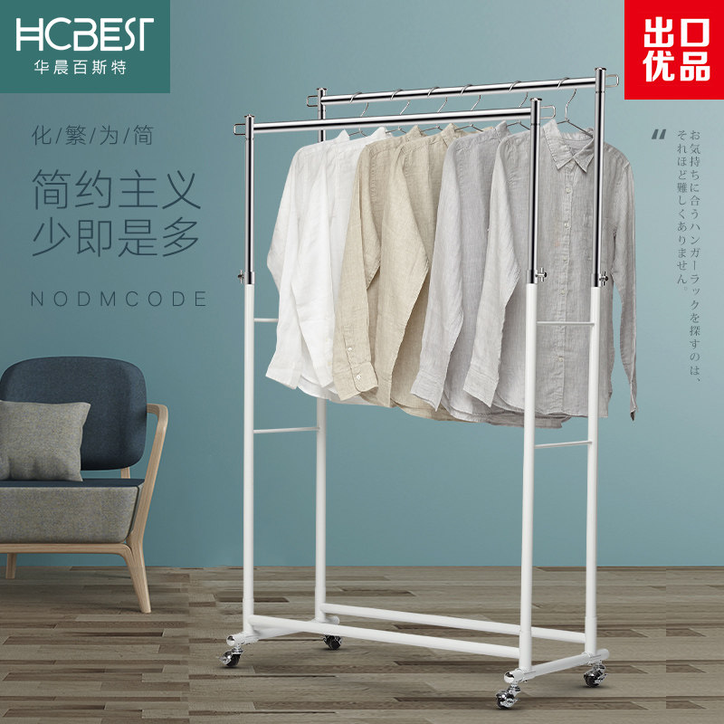 不锈钢晾衣架落地双杆式衣帽架室内阳台简易挂衣架落地卧室晒衣架