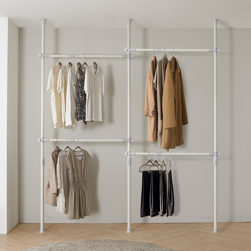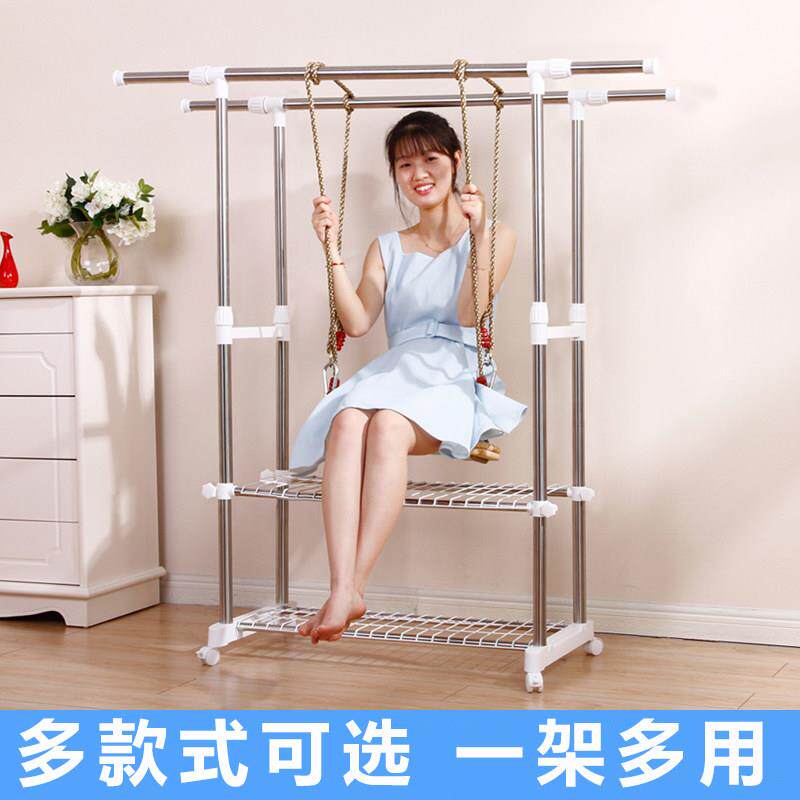 顶天立地晾衣架落地双杆双层加高卧室简约现代多功能伸缩衣服挂架