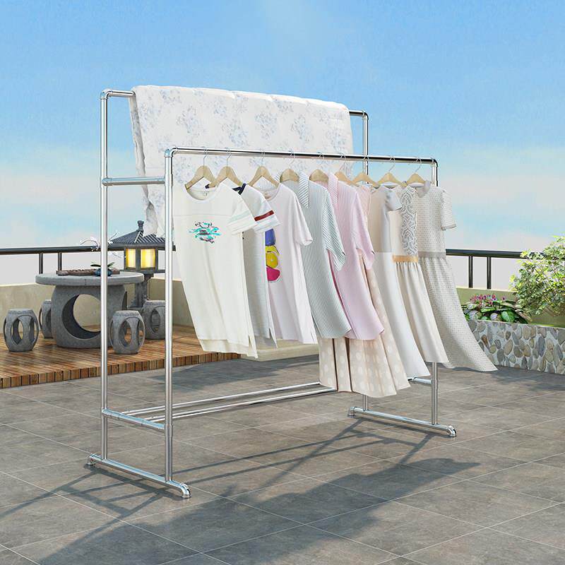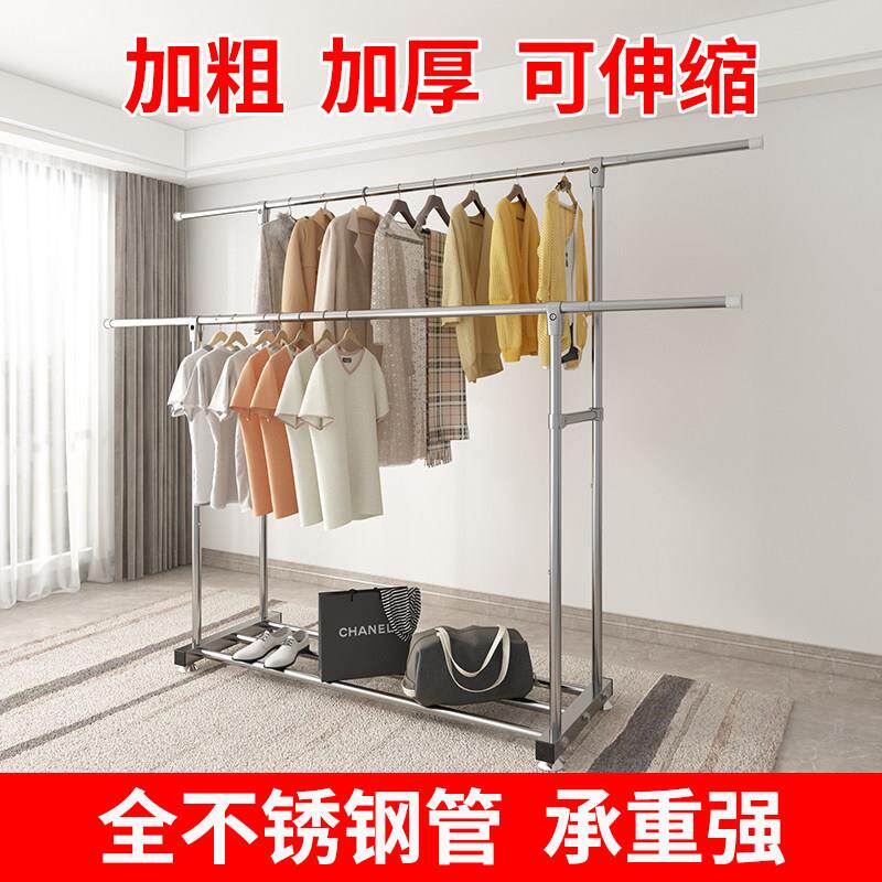 晾衣架落地双杆式不锈钢家用移动阳台室内凉衣架加粗加厚收纳简易
