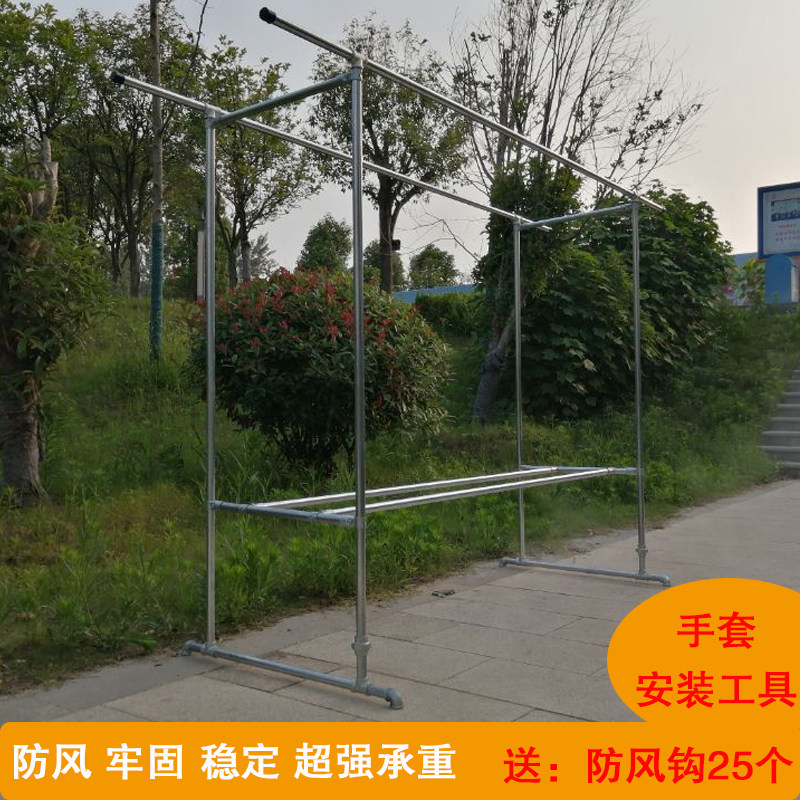 加粗1寸镀锌钢管晾衣架落地家用阳台挂衣户外室外防风双杆晒被子