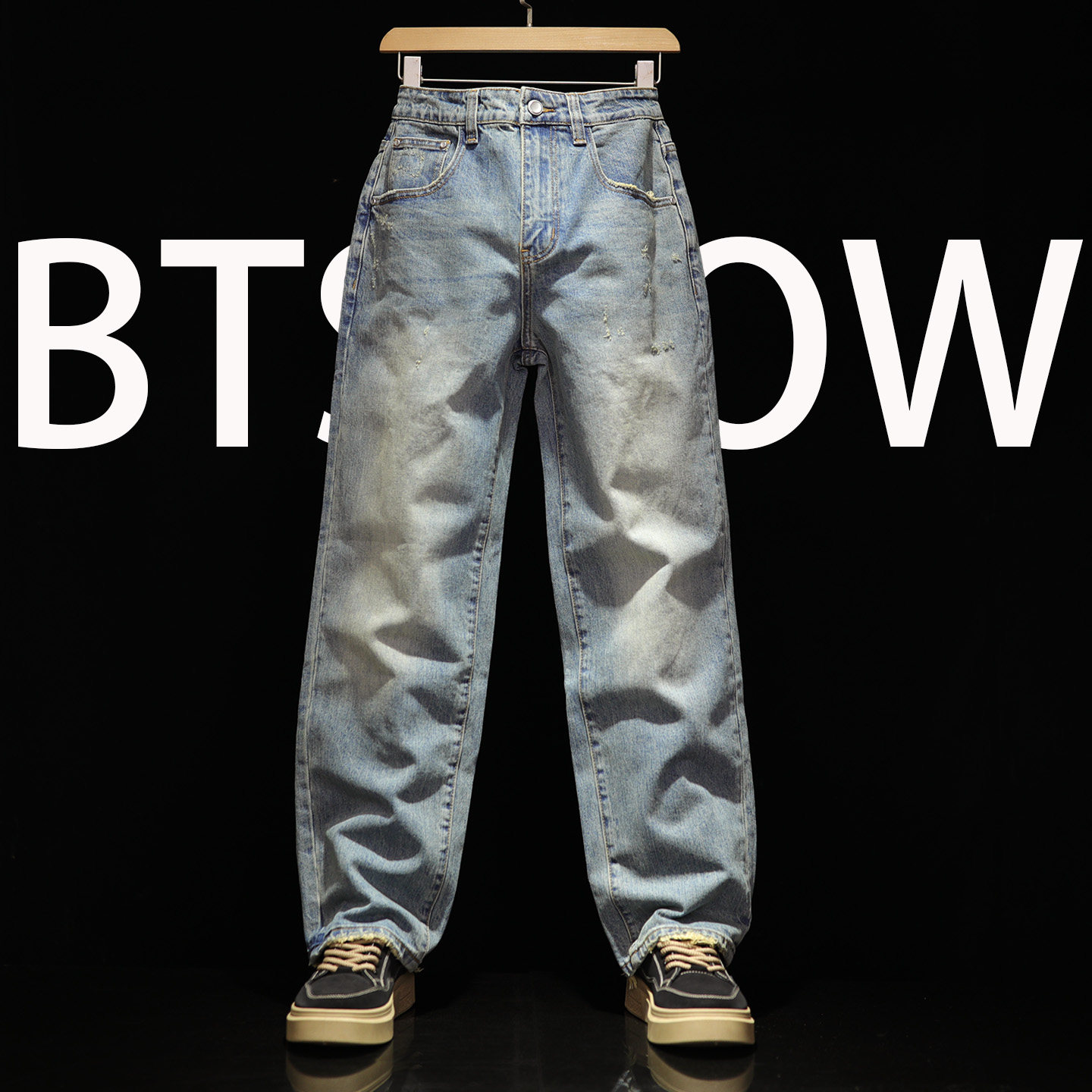 悟空有货潮牌复古做旧水洗直筒牛仔裤男街头宽松百搭阔腿休闲长裤