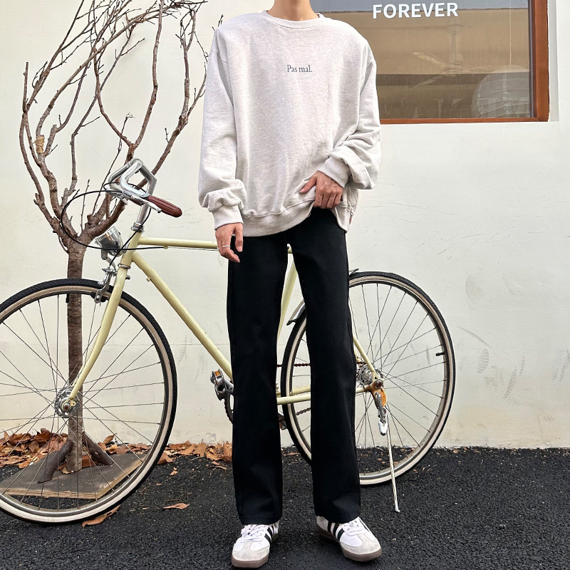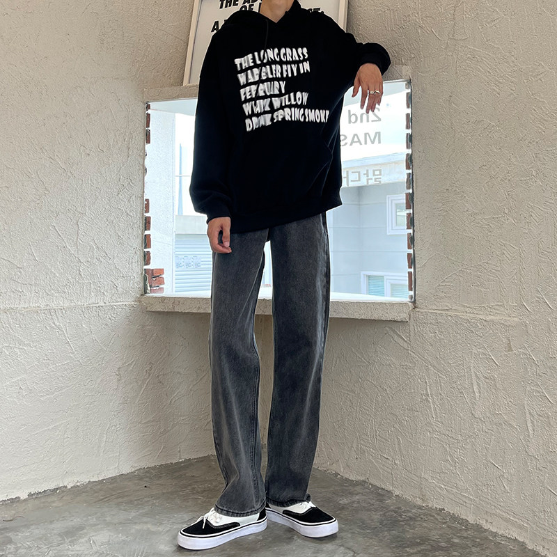 25秋冬季韩版垂感韩风黑色直筒牛仔裤男烟灰色宽松白色牛仔裤子男
