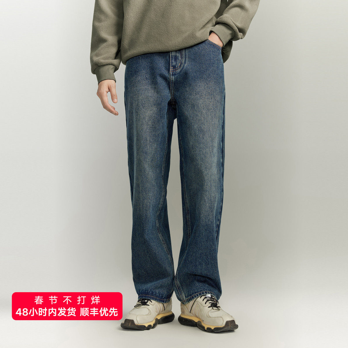 豪霆.美式复古宽松直筒牛仔裤男士春秋季潮流cleanfi休闲阔腿长裤