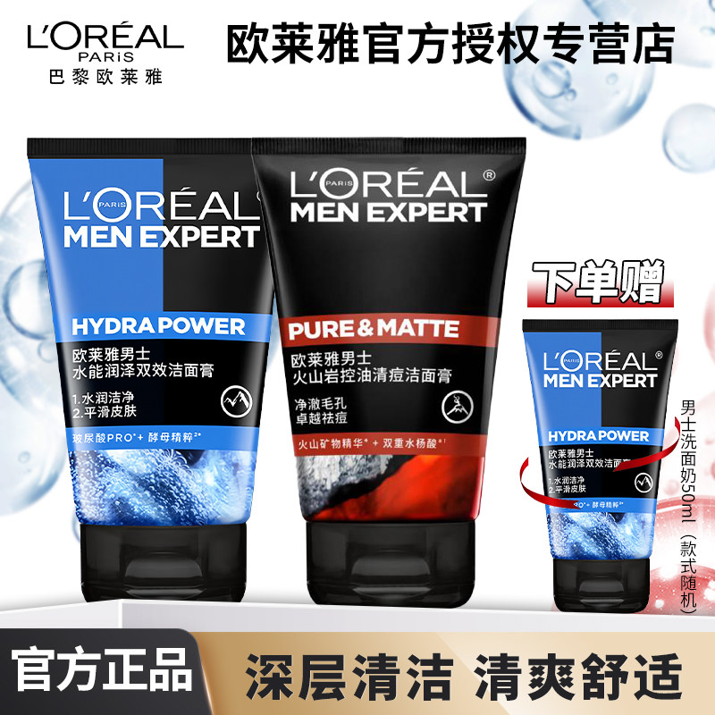 欧莱雅男士专用控油补水洗面奶深层清洁收缩毛孔洁面乳护肤品套装