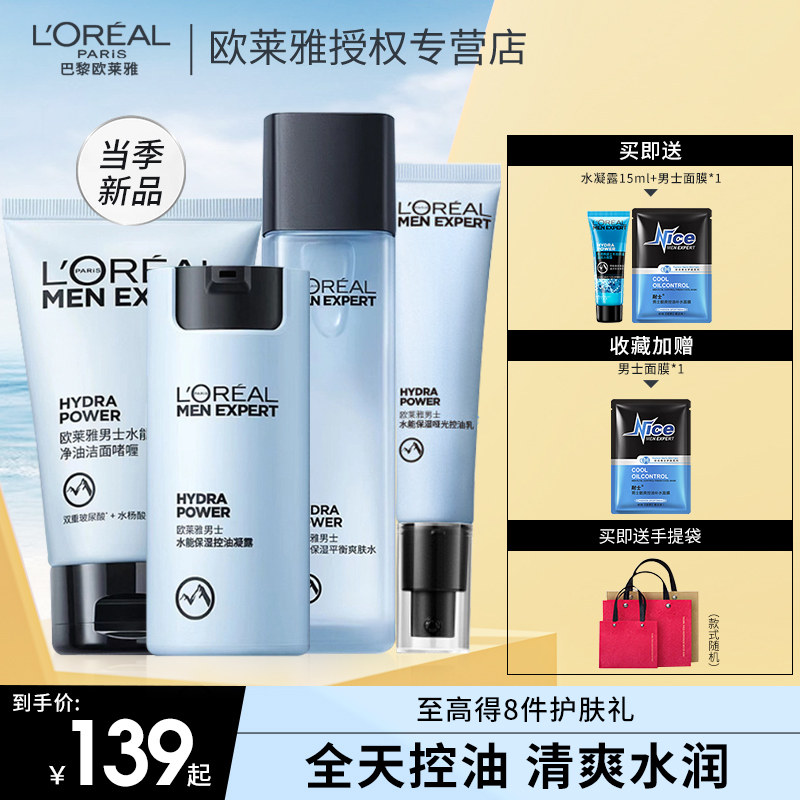欧莱雅男士控油套装哑光护肤品水乳洗面奶补水保湿爽肤水礼物正品