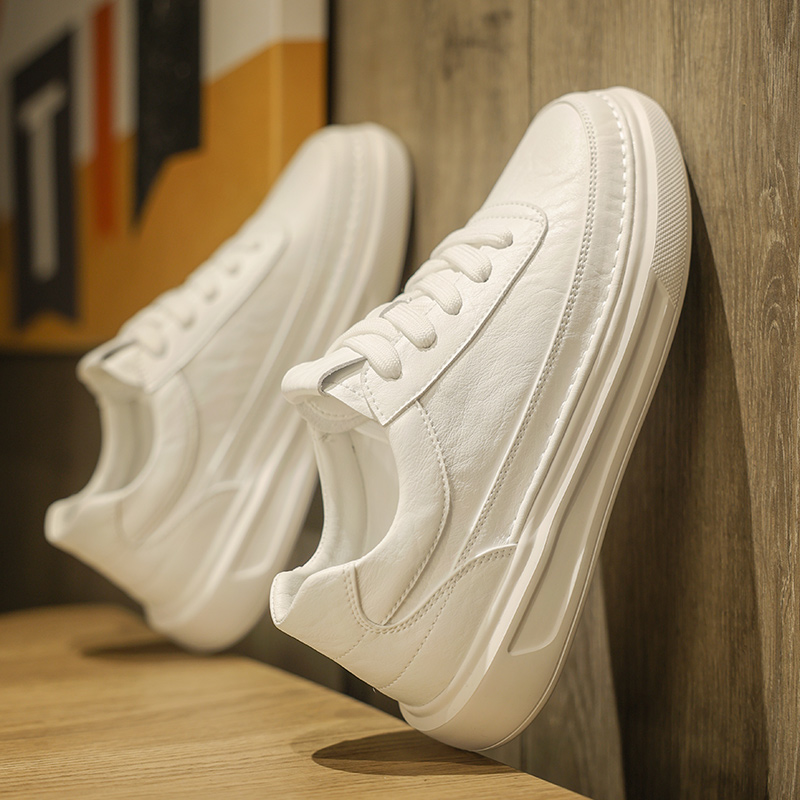 2025新款真皮系带小白鞋男夏季百搭透气厚底饼干鞋白色休闲板鞋潮