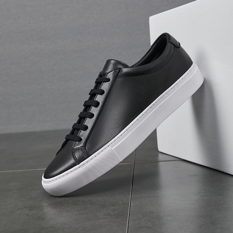 莆田新款头层牛皮小白鞋男夏季低帮潮流运动休闲男鞋韩版黑色板鞋