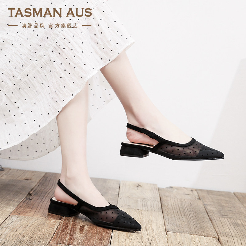 澳洲TASMAN AUS尖头网纱淑女鞋2022新款凉鞋夏季女款一脚蹬后空