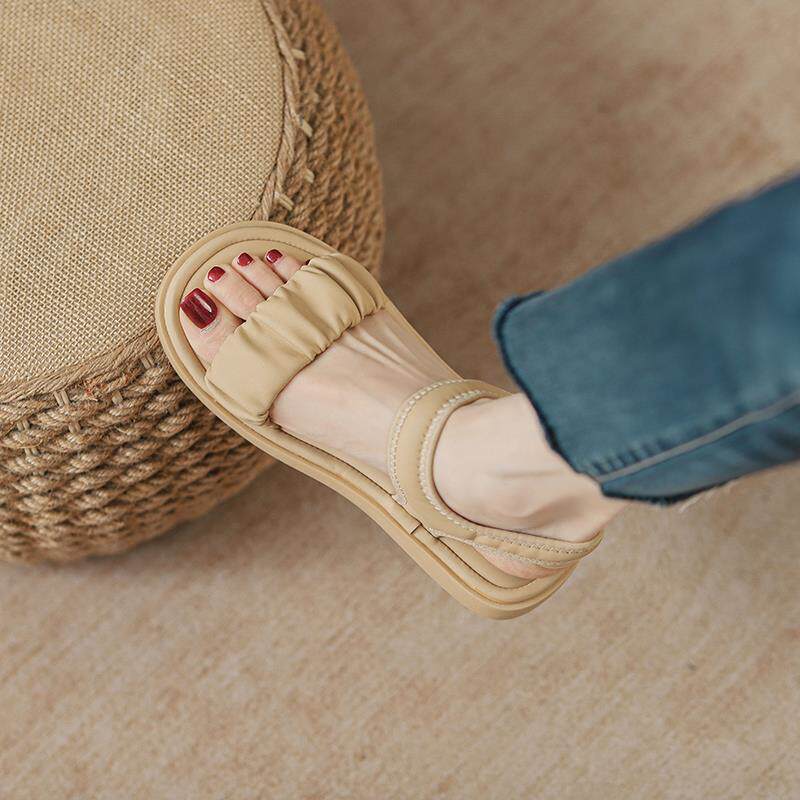 法式晚风凉鞋女款夏季2025新款百搭罗马鞋时尚沙滩拉链气质平底鞋