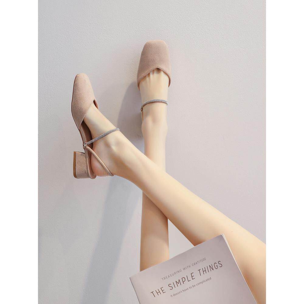 包头凉鞋女款夏季2025年新款水钻粗跟半拖仙女风外穿平底懒人单鞋
