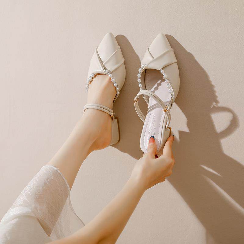 包头半拖鞋女2025新款夏季外穿粗跟懒人单鞋尖头低跟配裙凉鞋女款