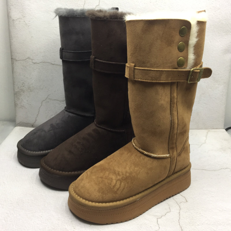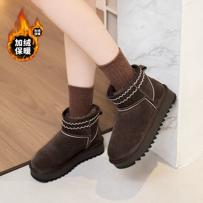 嘉俪多女鞋韩版短靴雪地靴牛反皮厚底圆头冬季厚绒套筒2025新款