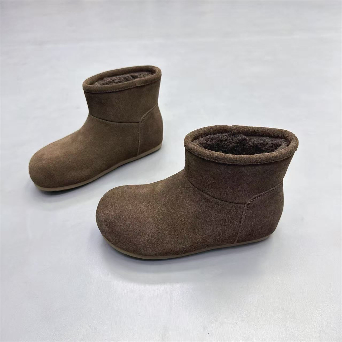 嘉俪多女鞋韩版短筒雪地靴牛反皮平底圆头冬季厚绒套筒2025新款