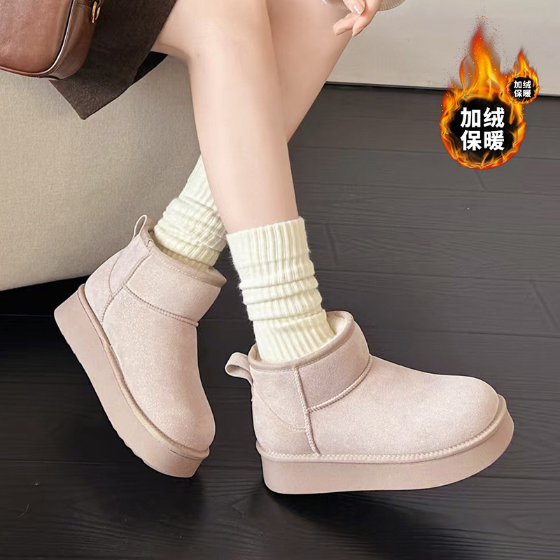 韩版厚底短筒雪地靴女2025冬季加绒保暖系带时装靴女舒适防滑防水