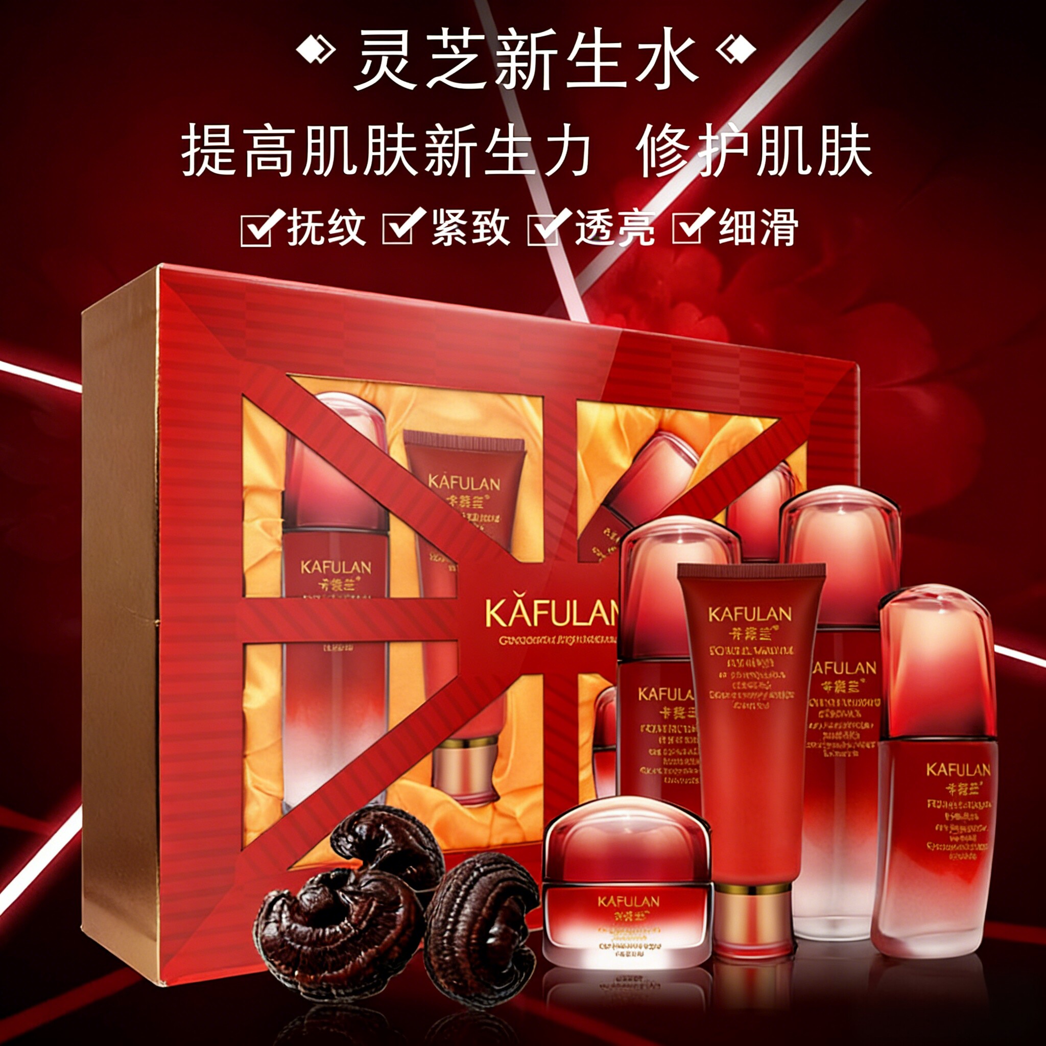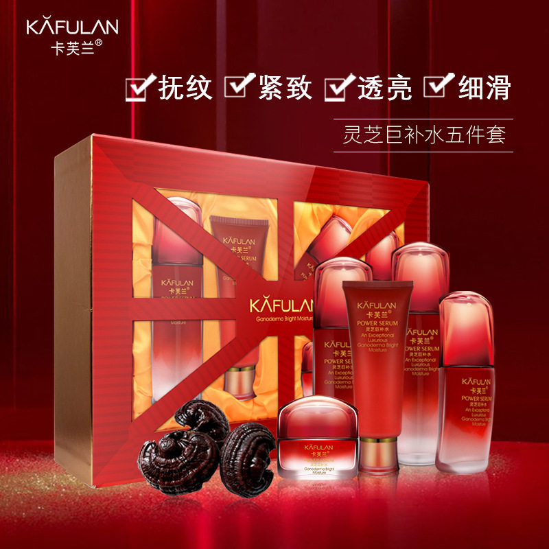 卡芙兰灵芝巨五件套装补水焕亮滋润抗老抗皱紧致保湿细致护肤套盒