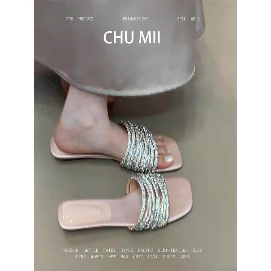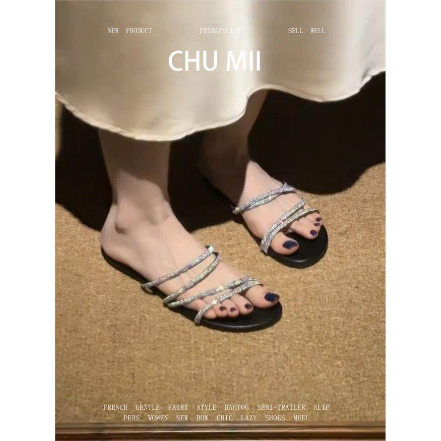 法式平底拖鞋女夏外穿高级感2026新款仙女风凉拖鞋水钻配裙子凉鞋