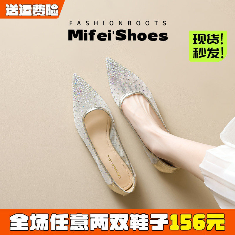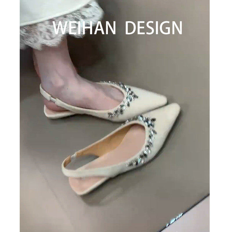 羊皮版!新中式尖头浅口平底凉鞋女水钻包头凉鞋后空气质凉拖单鞋
