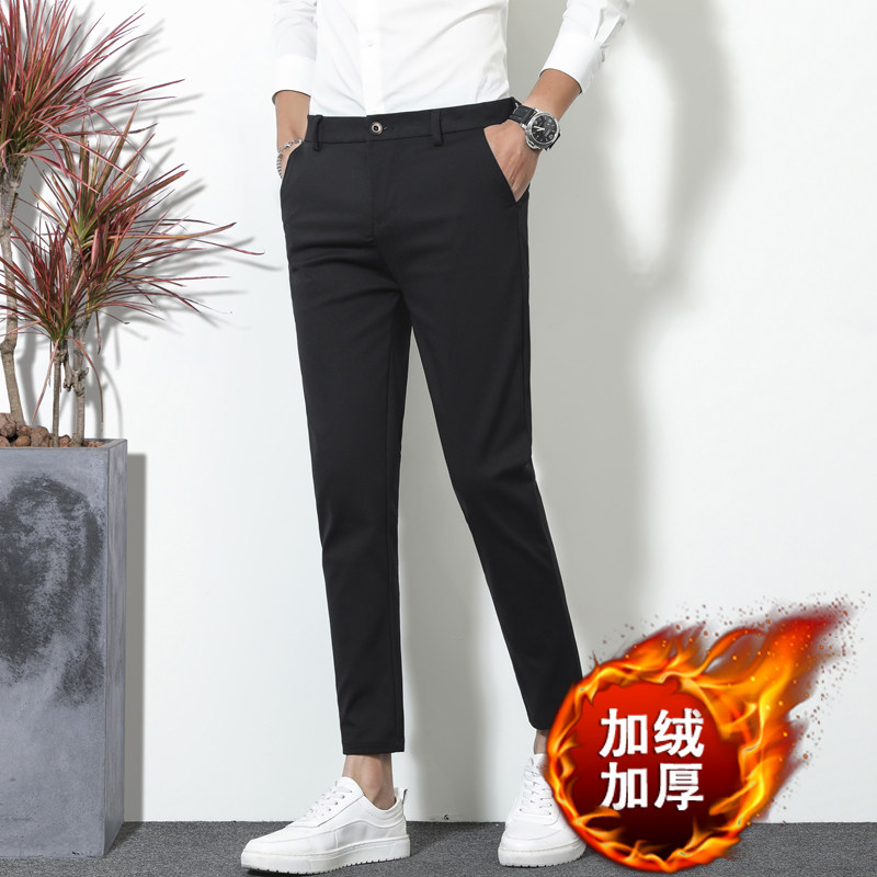 秋冬厚款休闲裤男士修身弹力小脚裤轻奢九分裤子男商务韩版小西裤