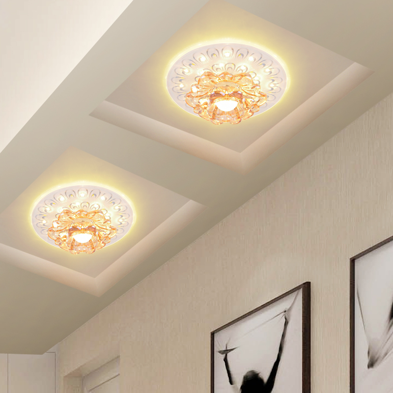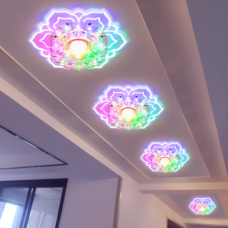 led走廊灯过道灯水晶玄关灯莲花七彩客厅灯 门厅灯吊顶创意吸顶灯