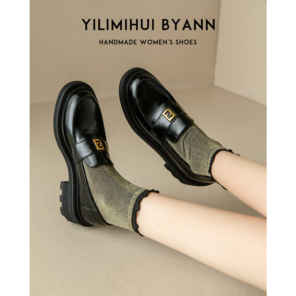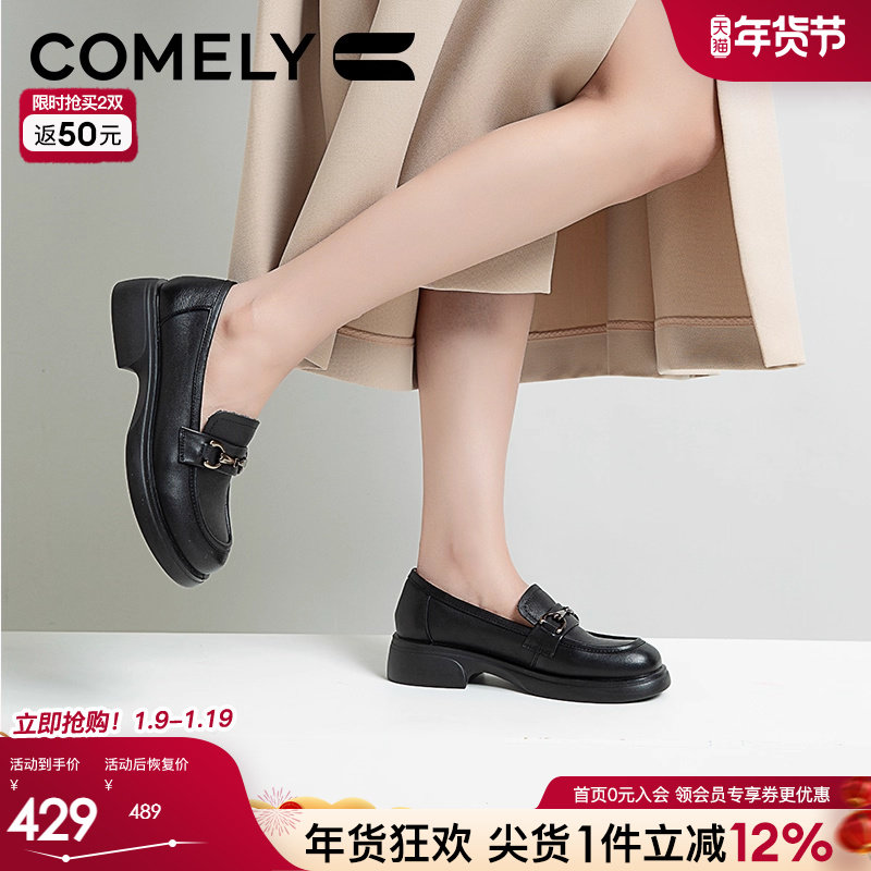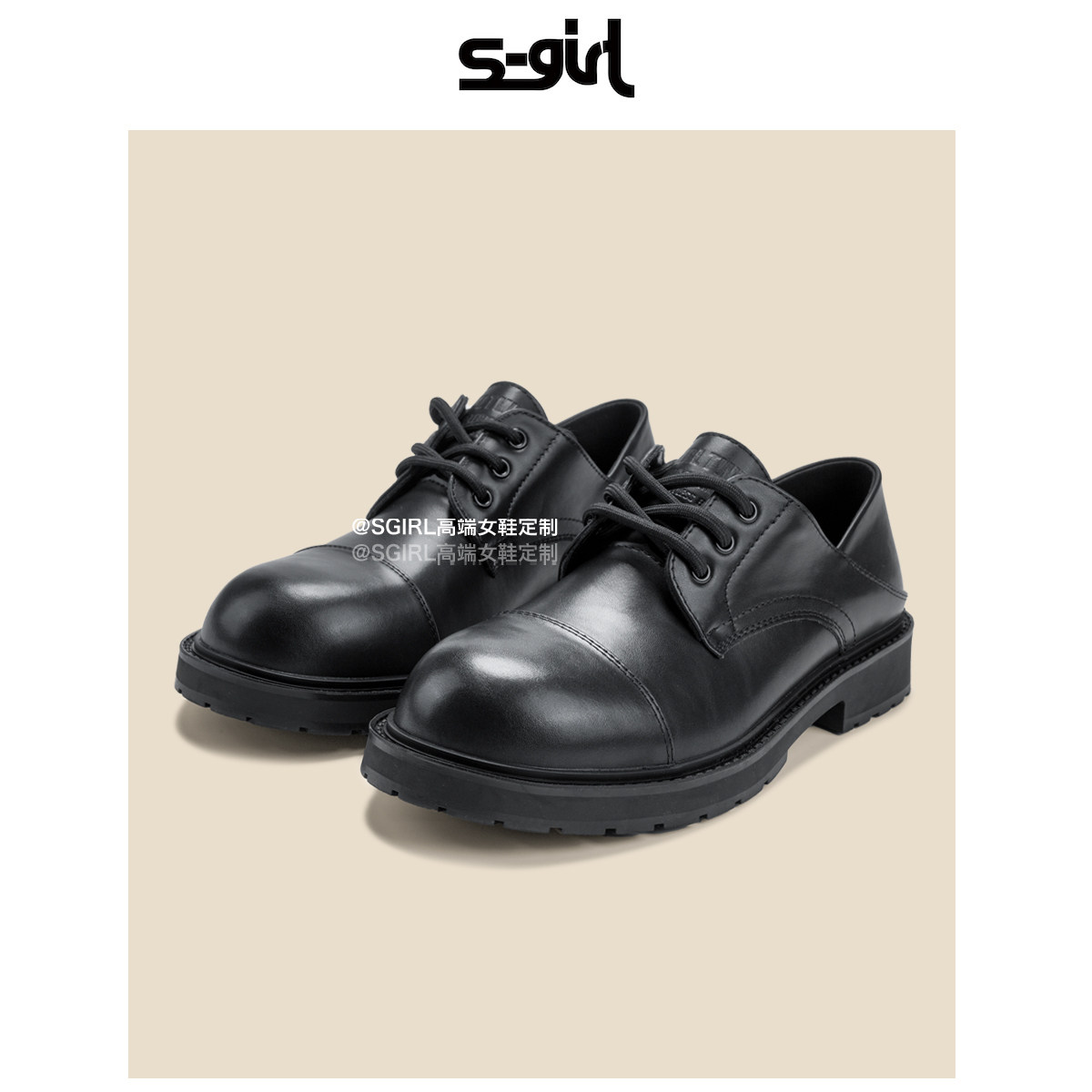 - 英伦风真皮女鞋 粗跟