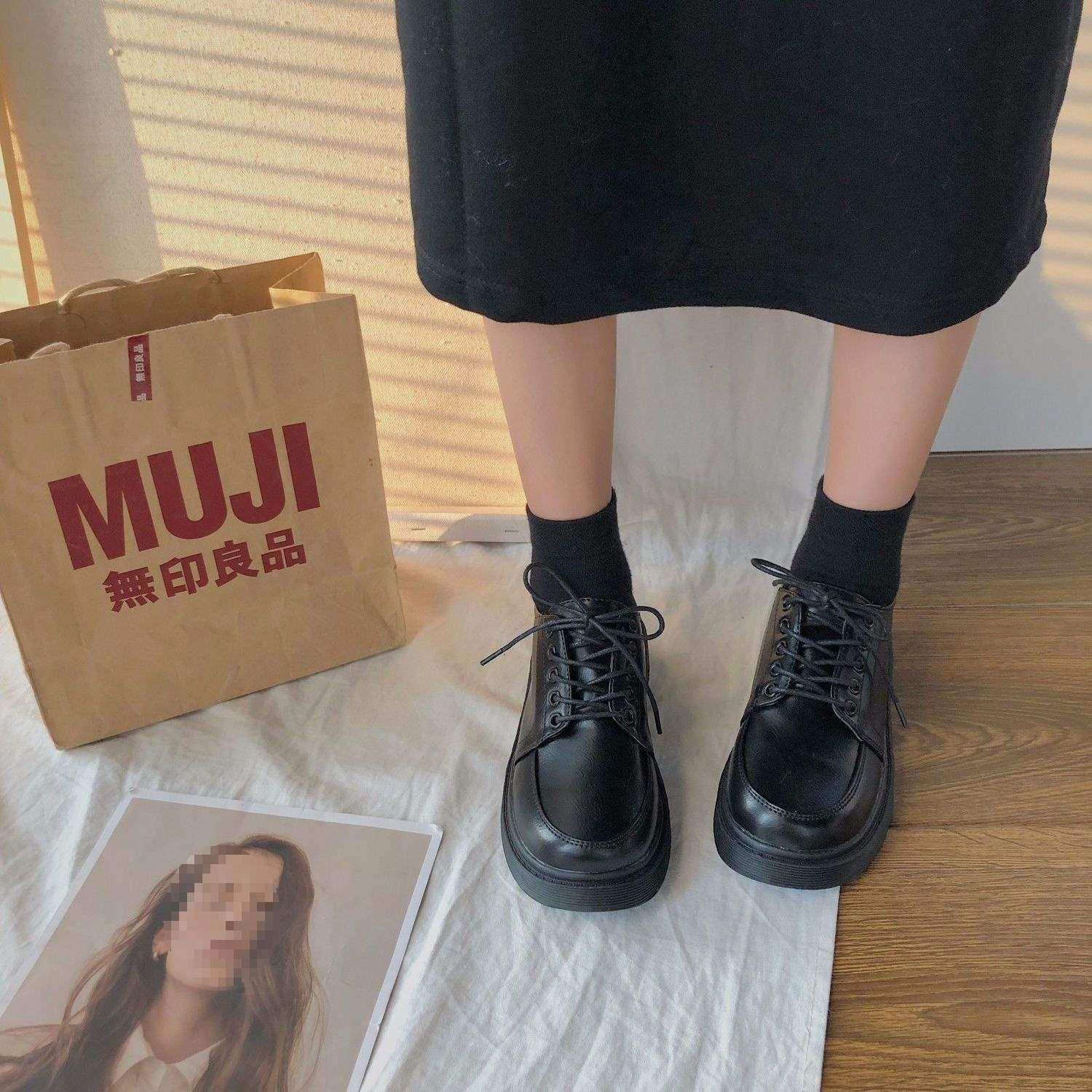 - 小皮鞋女英伦学院风圆头