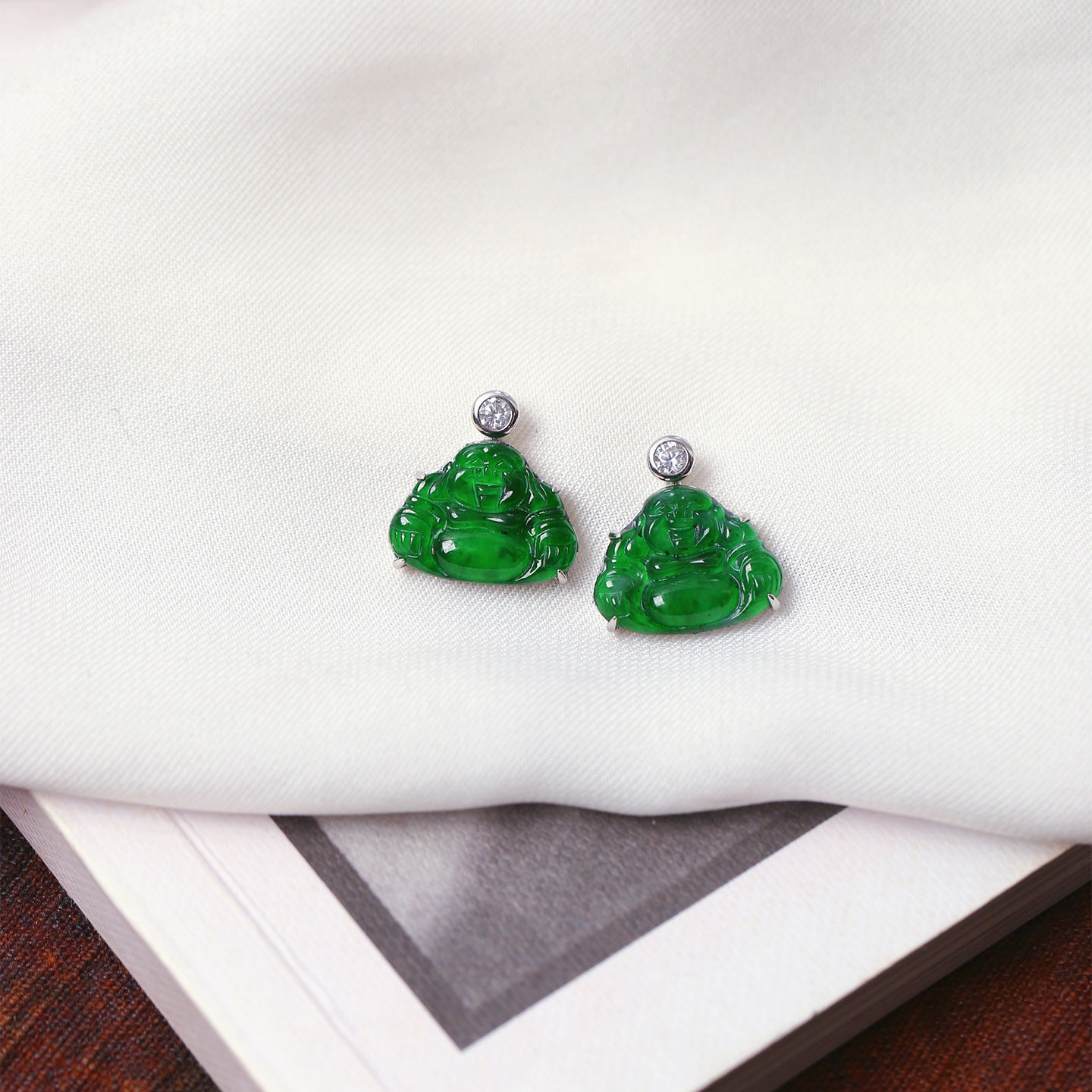 天然A货翡翠缅甸料弥勒佛18K金扣头镶嵌吊坠女款翡翠佛公挂坠饰品