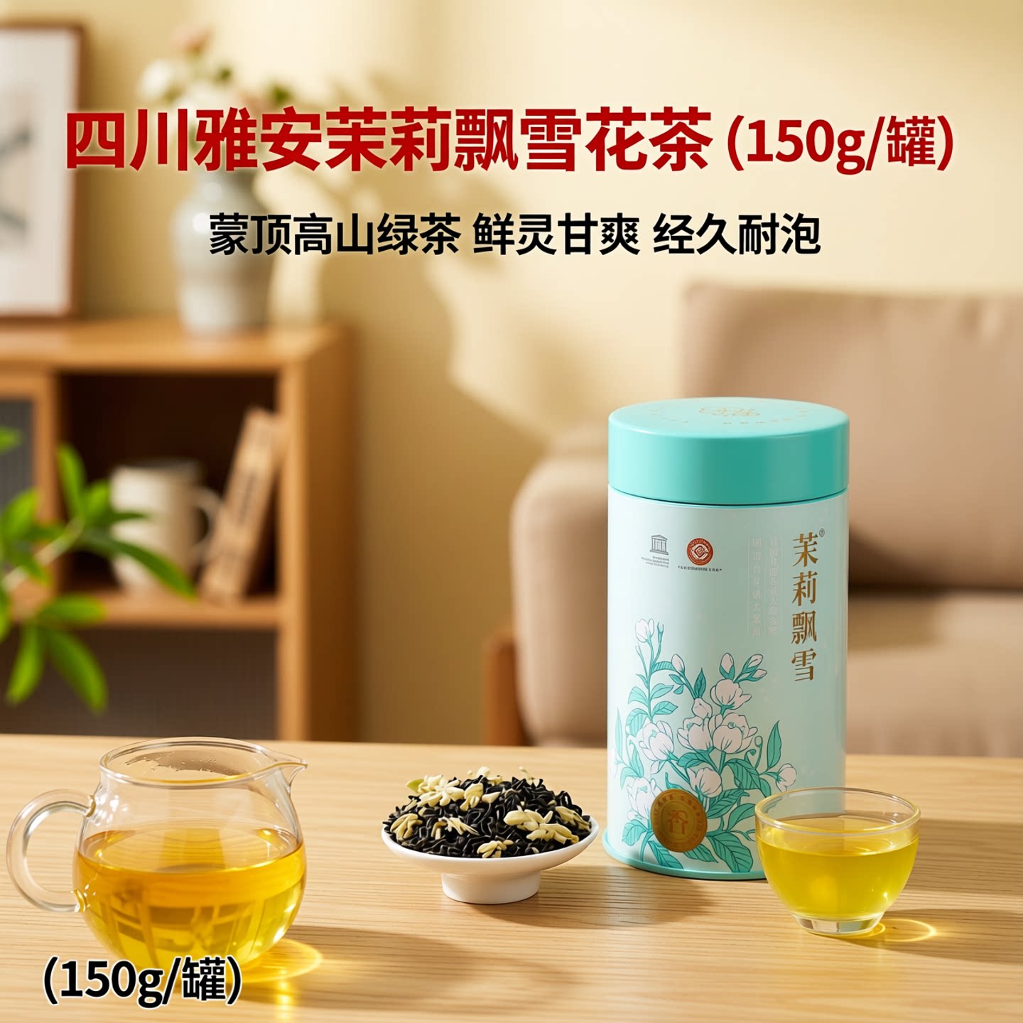 四川雅安茉莉飘雪花茶2026新茶自己喝正宗蒙顶高山绿茶口粮茶罐装