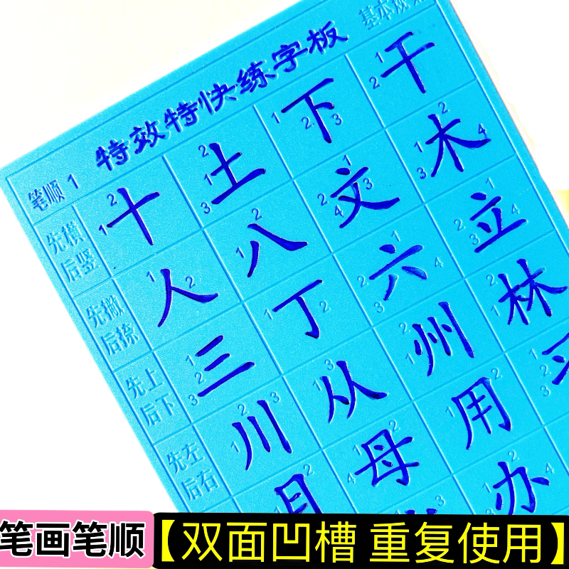 弘羌三周特效凹槽练字板塑料字模学生成人楷书偏旁部首8张送笔1支