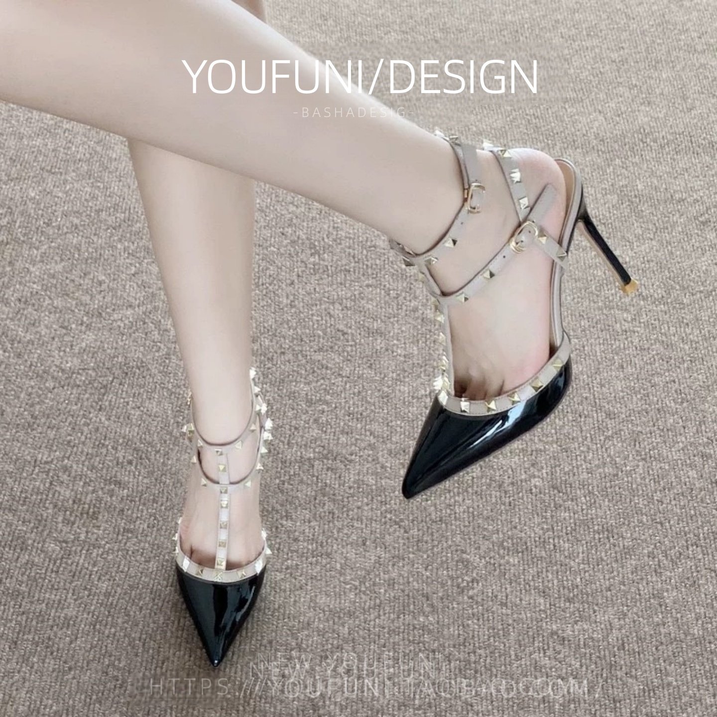 欧美性感尖头铆钉2026高跟鞋女细跟一字扣凉鞋女柳丁婚鞋中跟单鞋