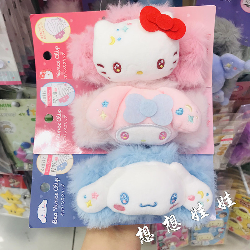 现货日本三丽鸥kitty玉桂狗美乐蒂毛绒鲨鱼夹抓夹发夹发饰夹子