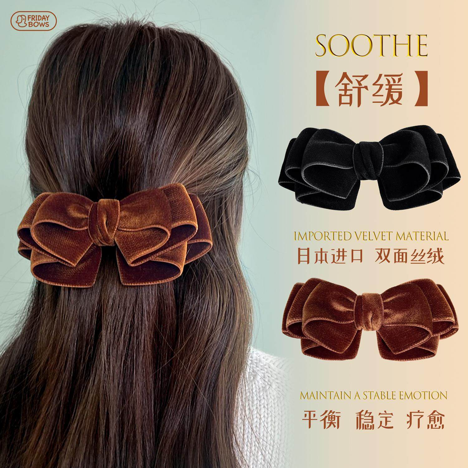 FriBow日本进口双面丝绒超大蝴蝶结ins高奢发饰高级质感头饰黑色