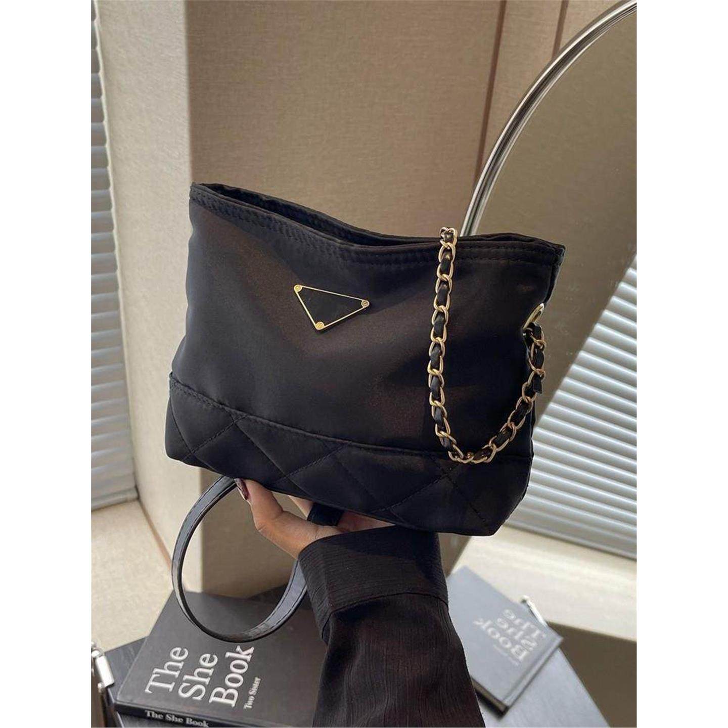 菱格链条水桶包包女2025新款高级感时尚单肩包尼龙布百搭斜挎女包