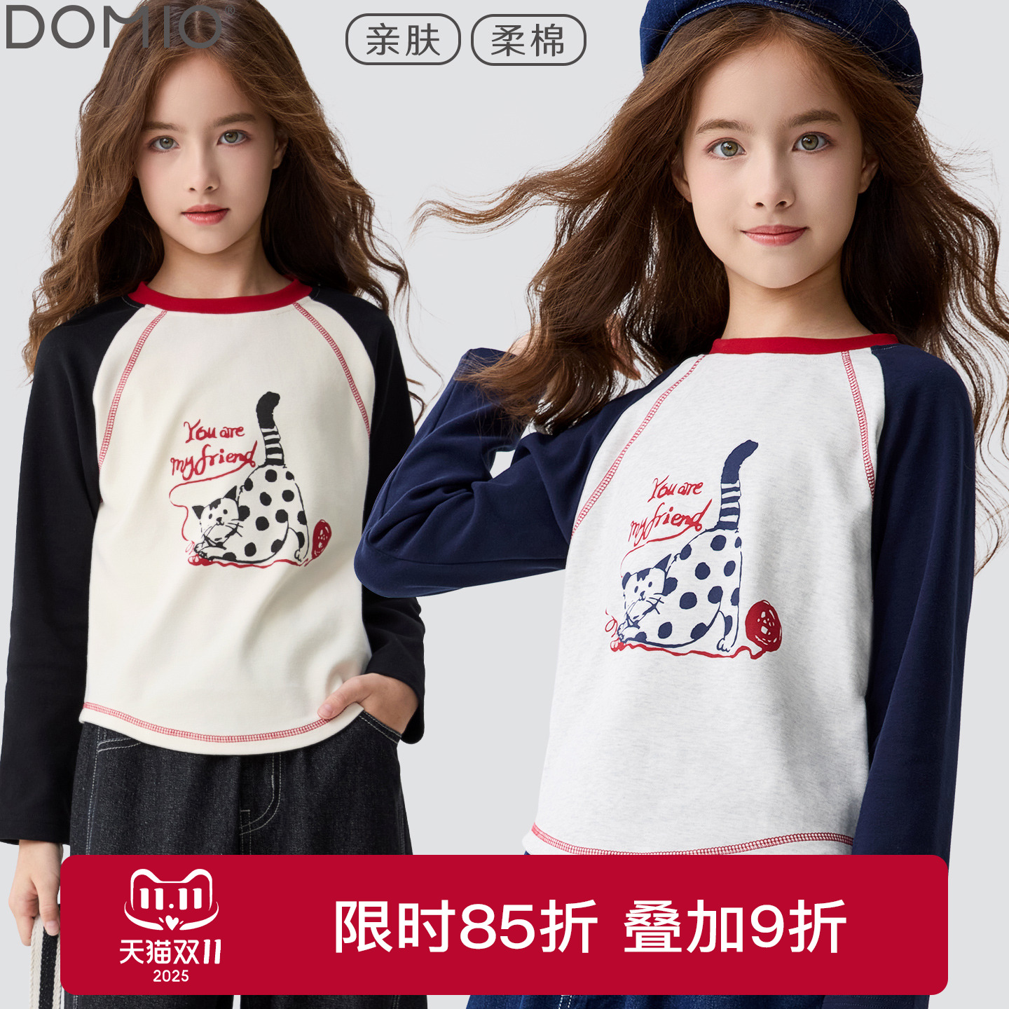 纯棉中大童插肩袖长袖T恤秋装开学季新款女童打底衫儿童春秋上衣