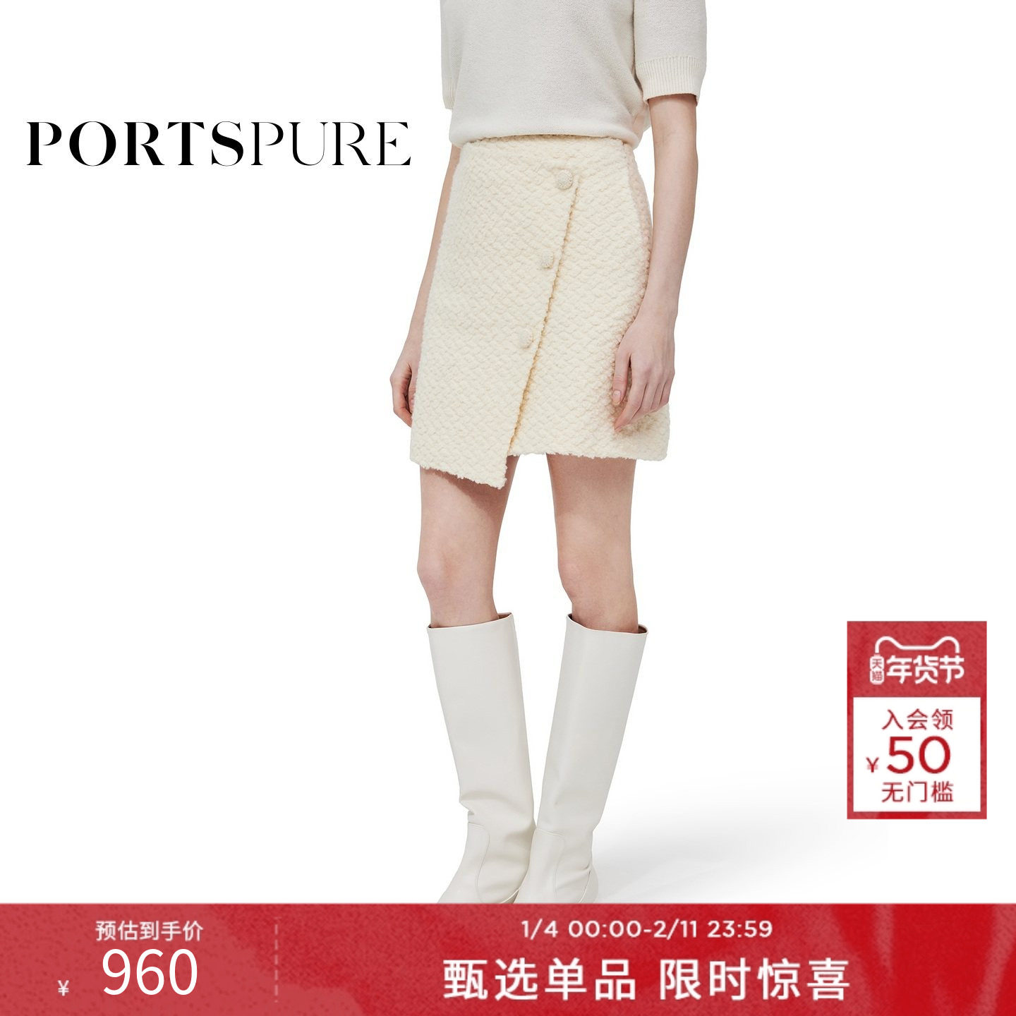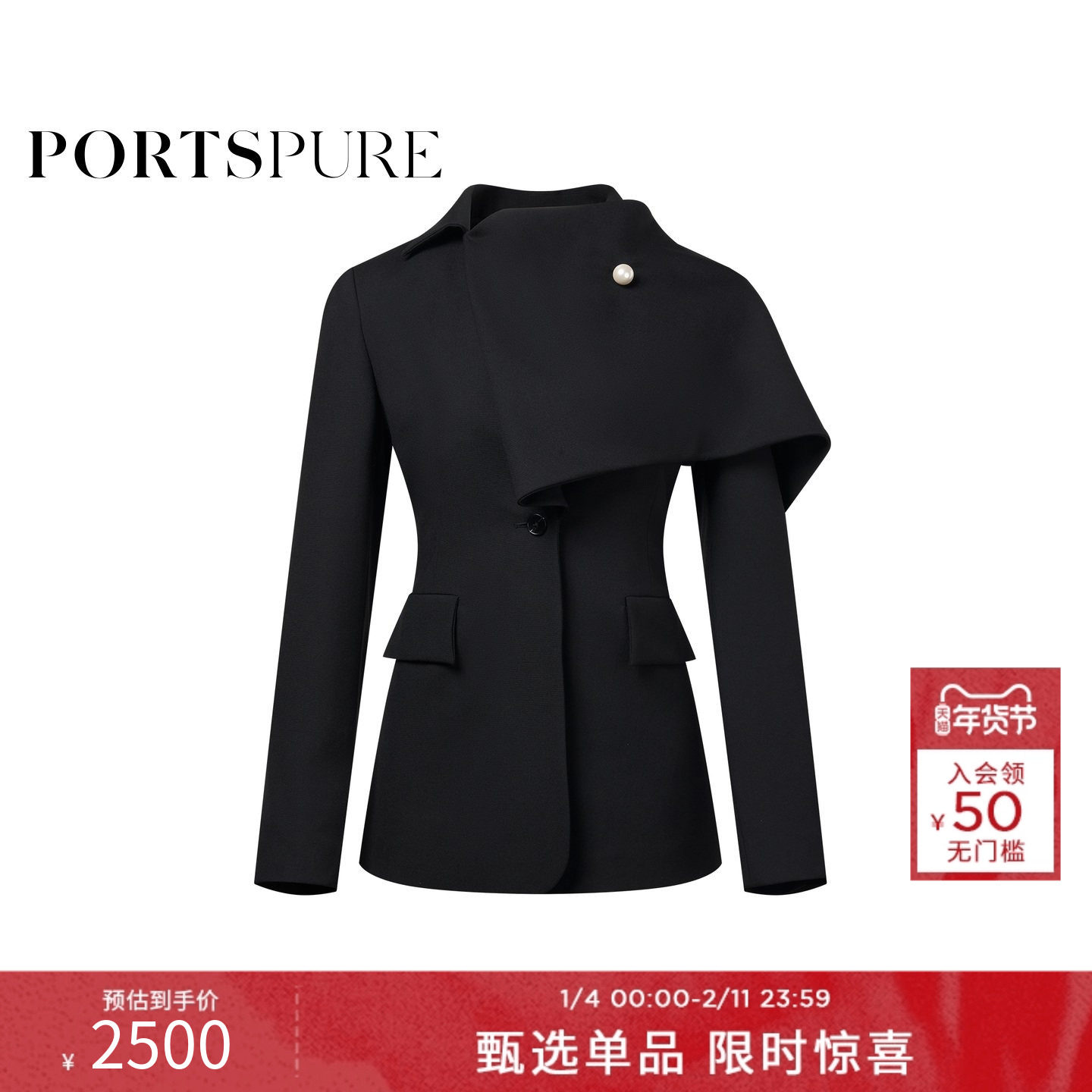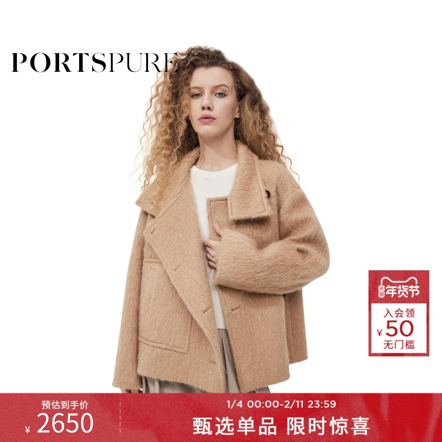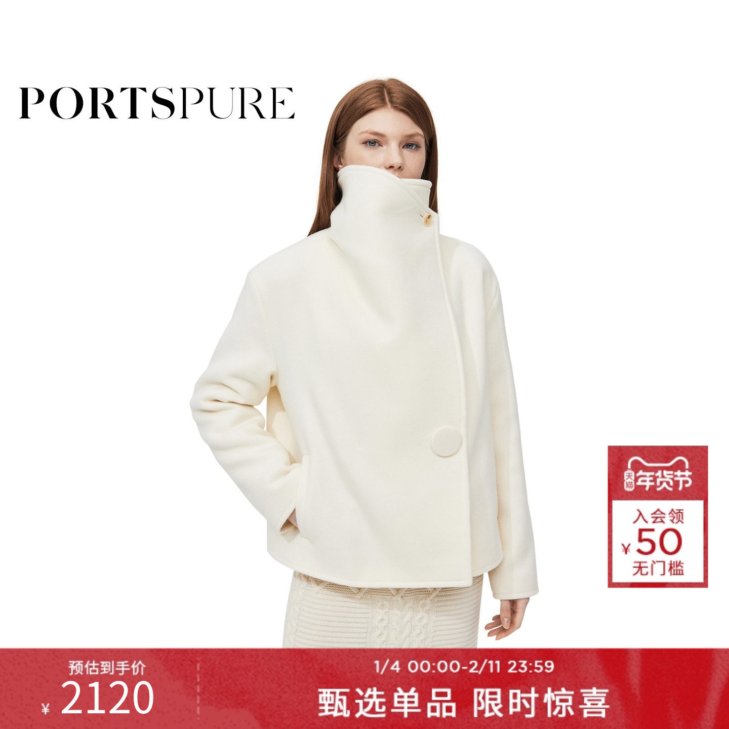 宝姿PORTSPURE女装设计感优雅毛呢外套RT9C012UWW052