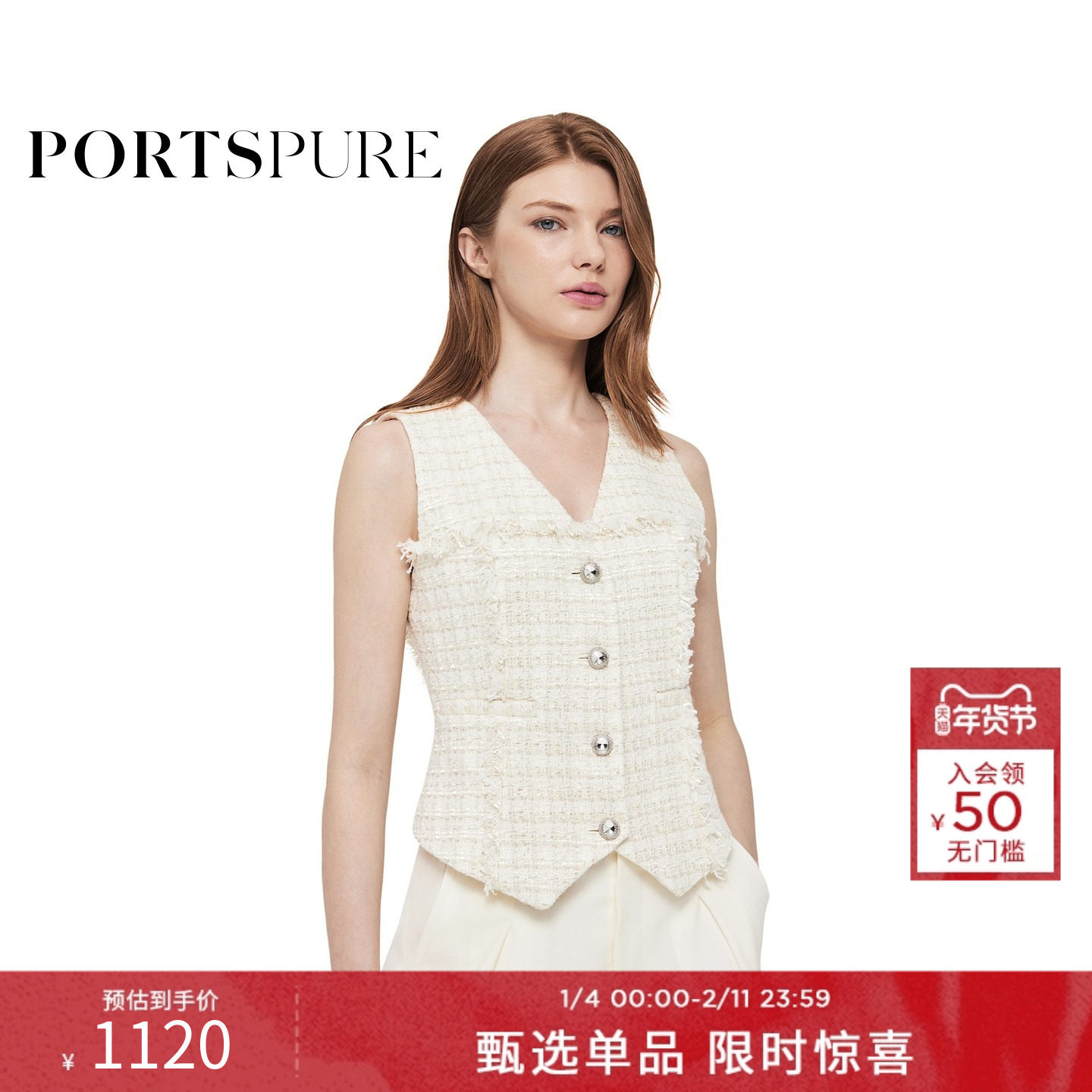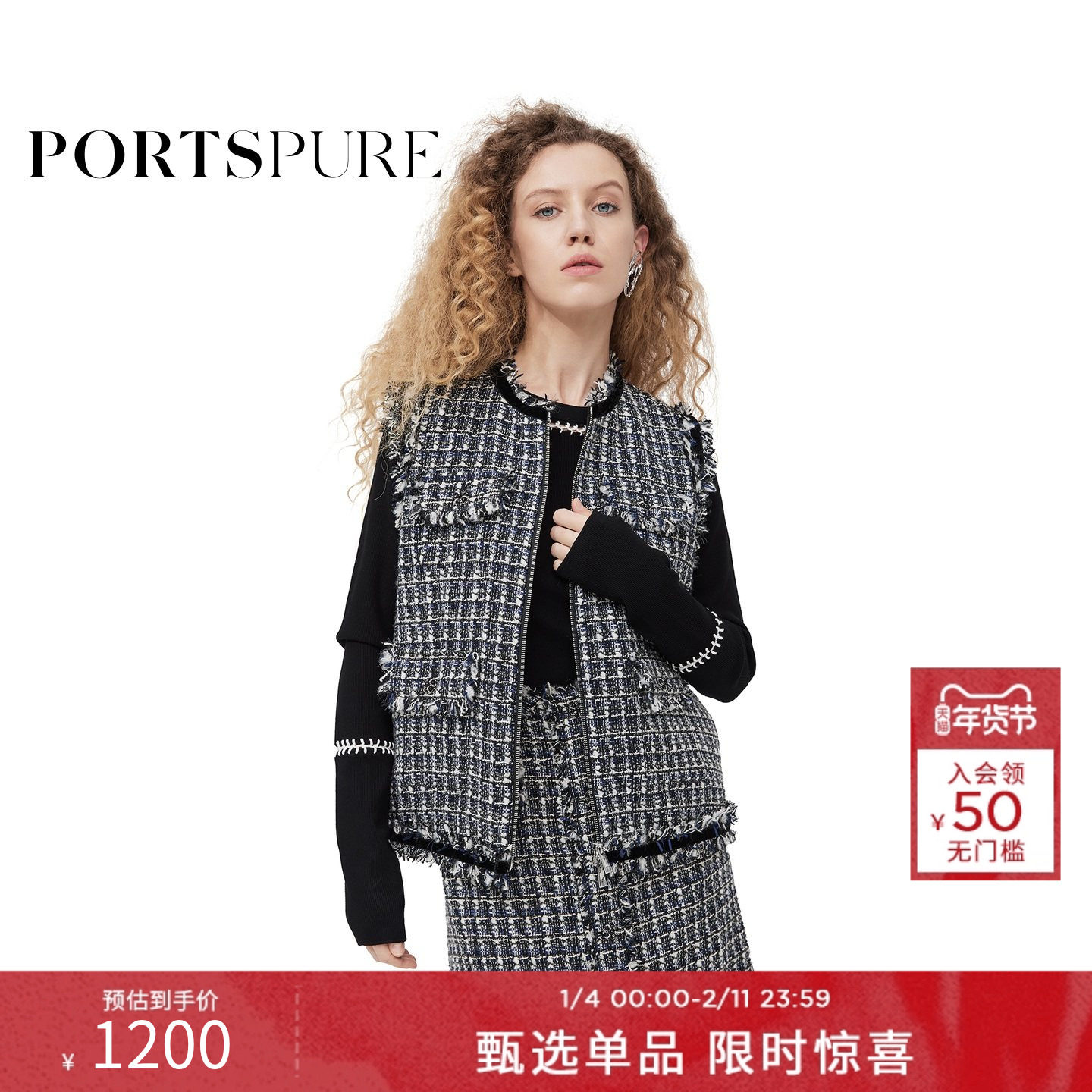宝姿PORTSPURE女装春季小香风优雅无袖马甲RT7J031UFF088