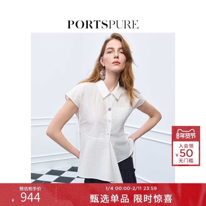 宝姿PORTSPURE女装舒适经典随性解构不规则设计短袖衬衫