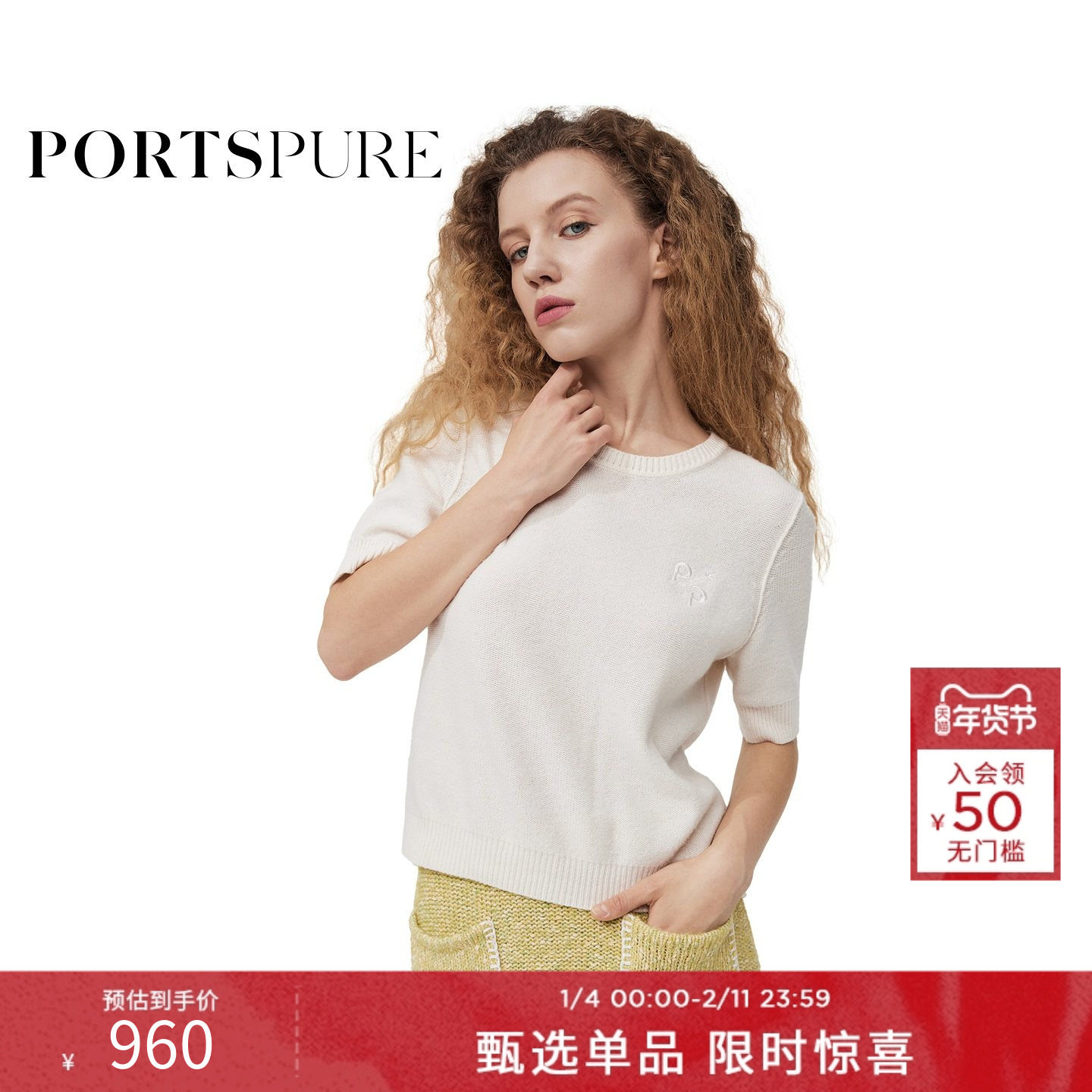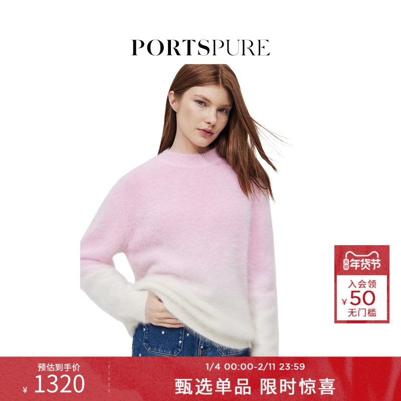 【吴宣仪同款】宝姿PORTSPURE女装秋冬百搭软糯舒适短袖毛针织衫