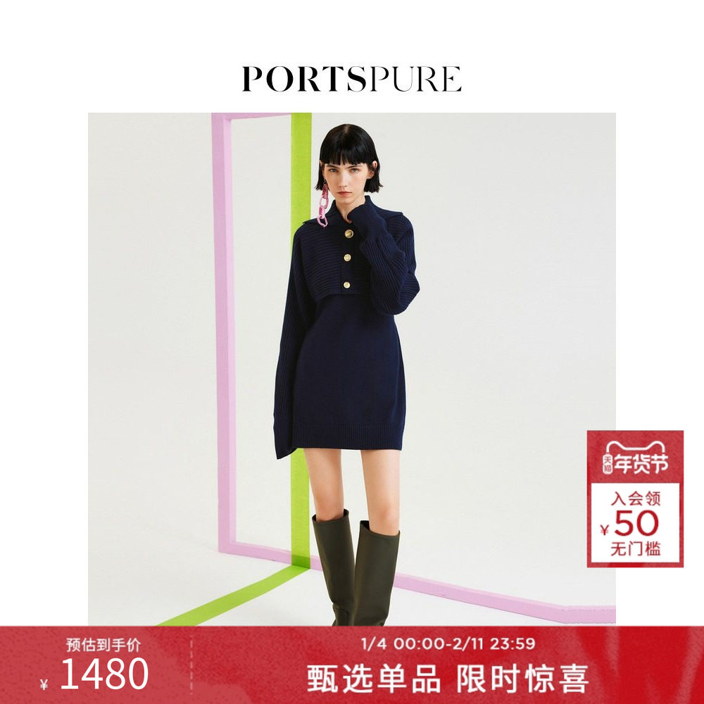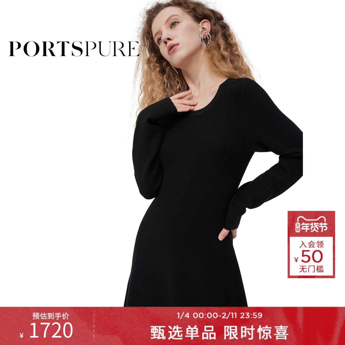宝姿PORTSPURE女装春季经典优雅赫本风小黑裙针织连衣裙